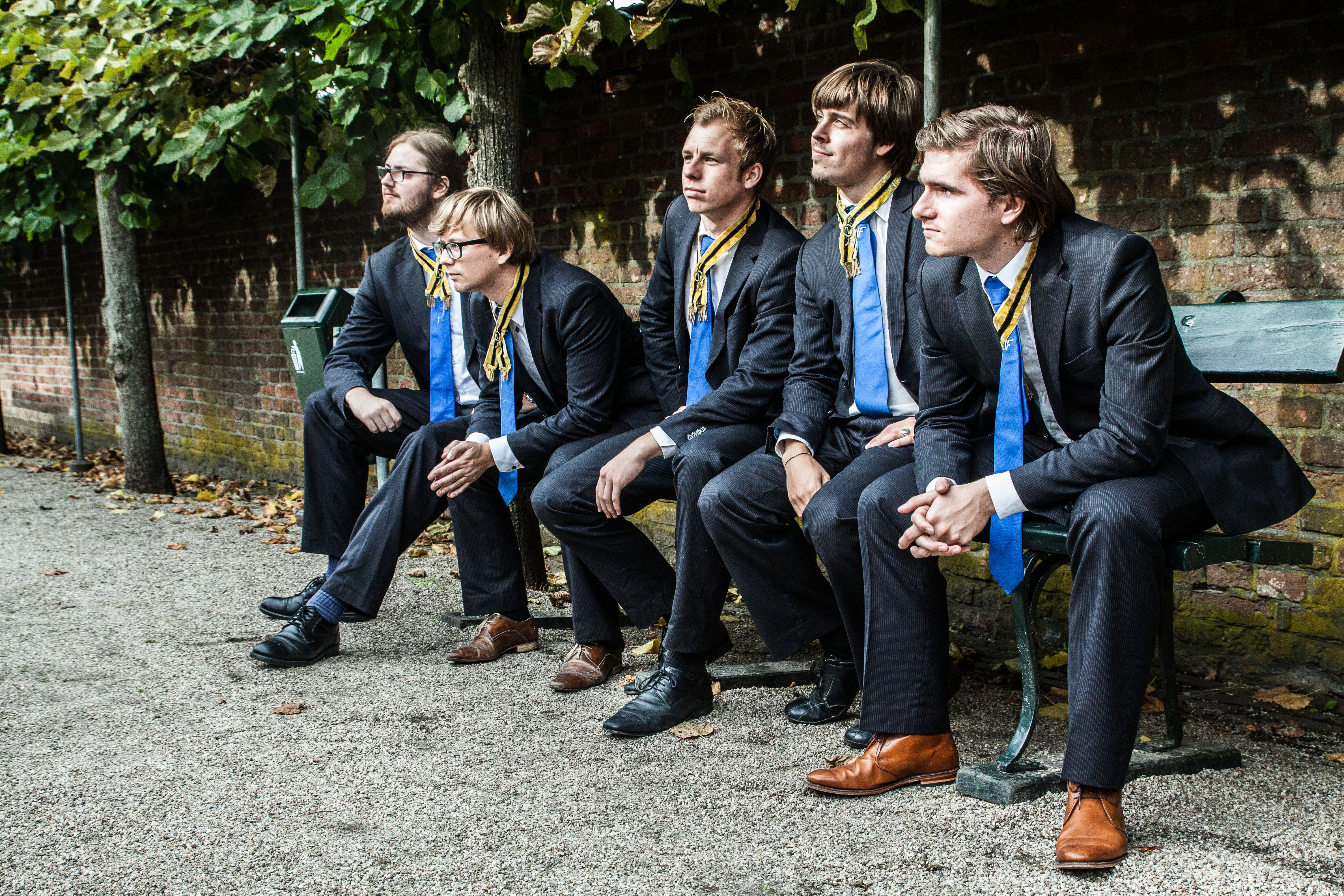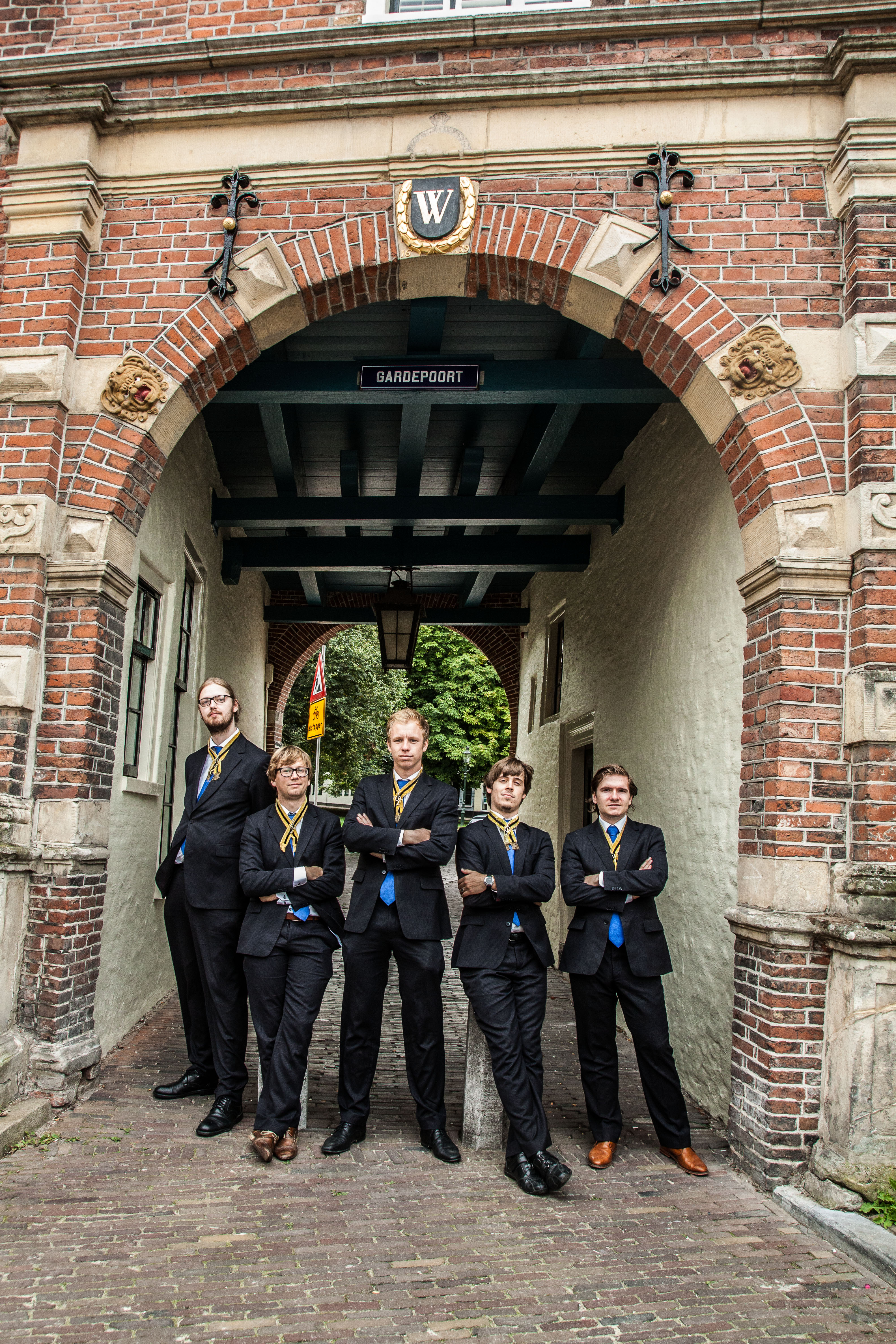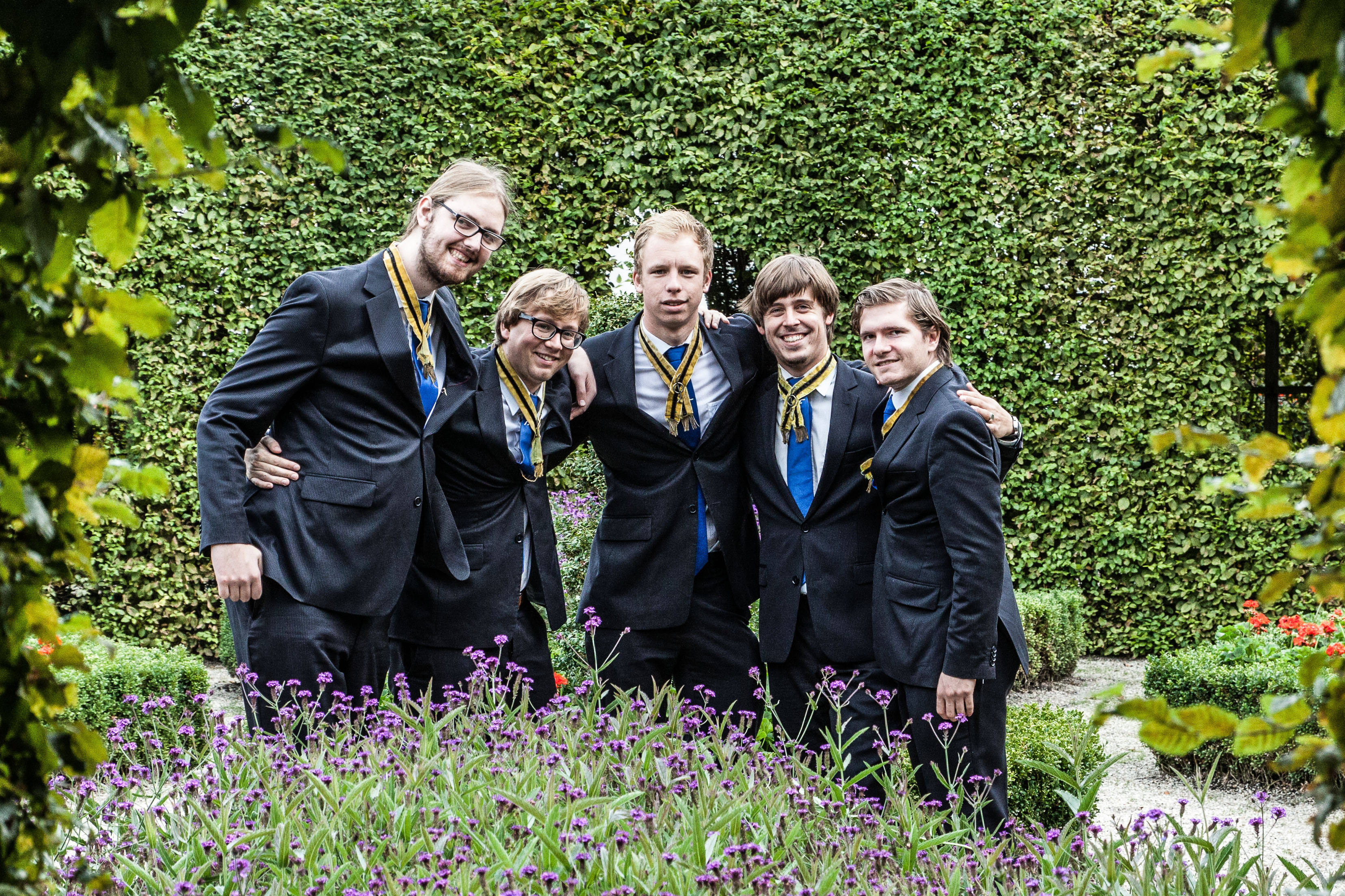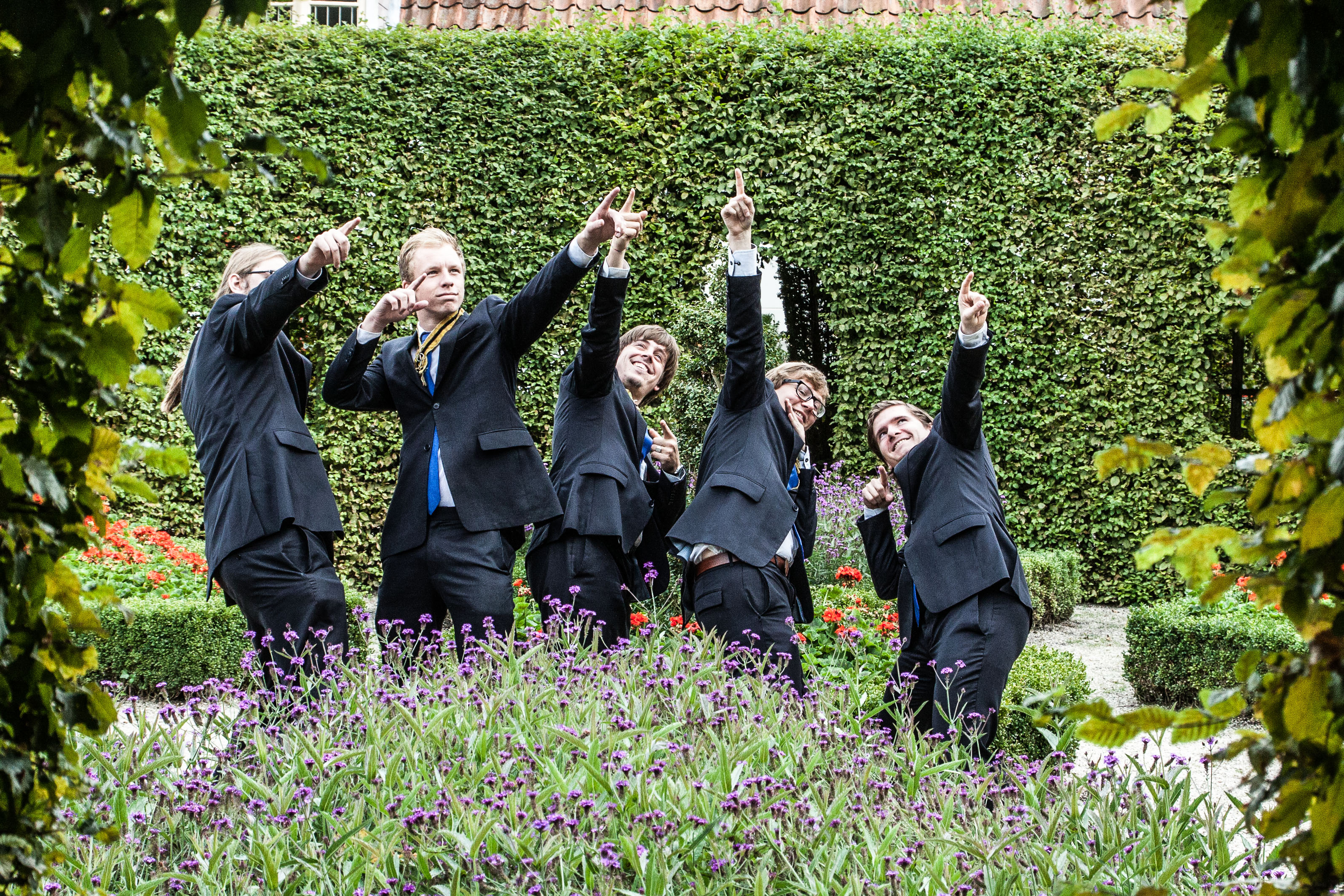 the Titanen at the end of a long year, at that moment still known as the board, together to shine one last time in our stylish suits. With blue ties and constitutional ribbons. These photos where taken in the Prinsentuin in Groningen, with thanks to our photographer Cees Draaijer.